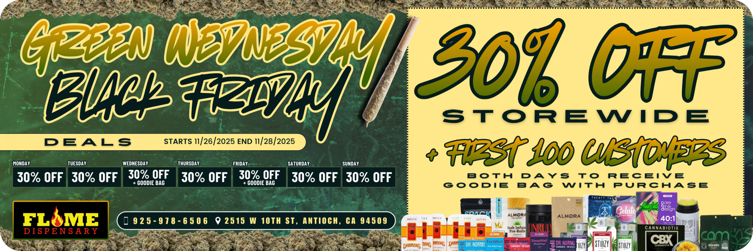 Flame Dispensary, located in Antioch, CA, proudly offers a curated selection of premium cannabis products. Explore our diverse menu featuring top-quality strains, flowers, concentrates, edibles, and more. At Flame Dispensary, we’re dedicated to providing accessible and exceptional cannabis experiences.